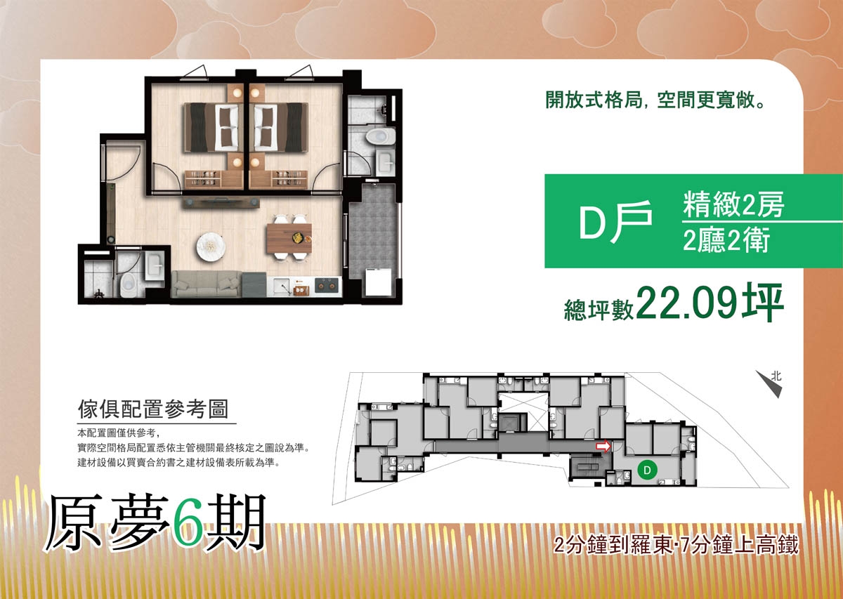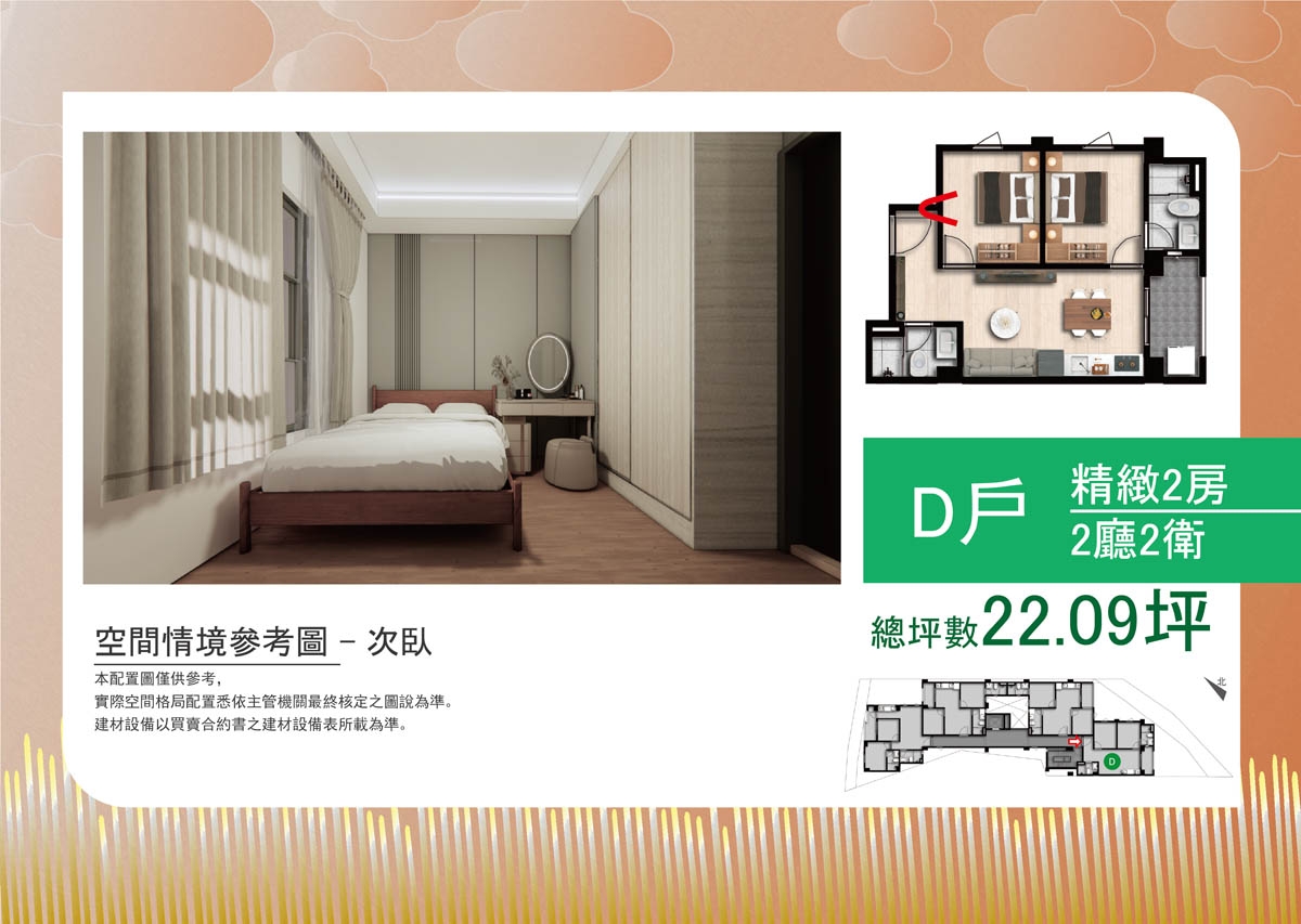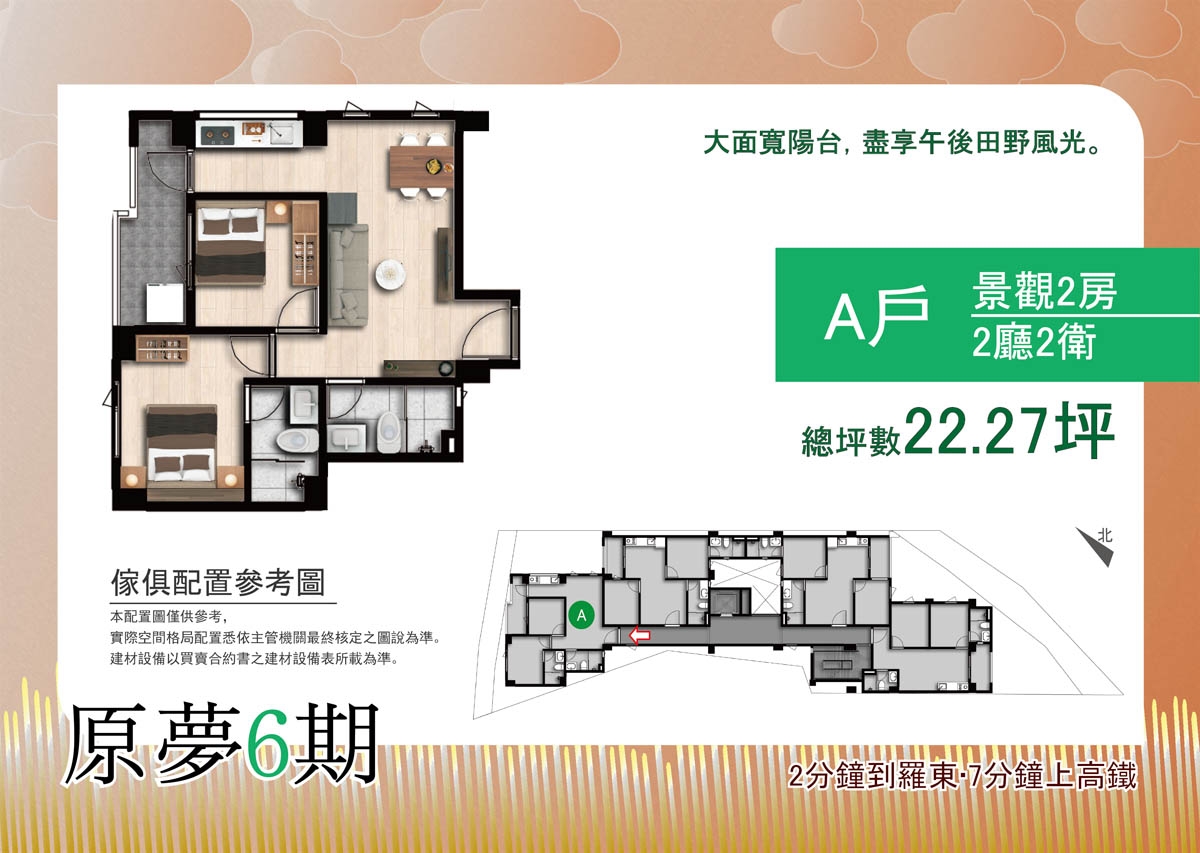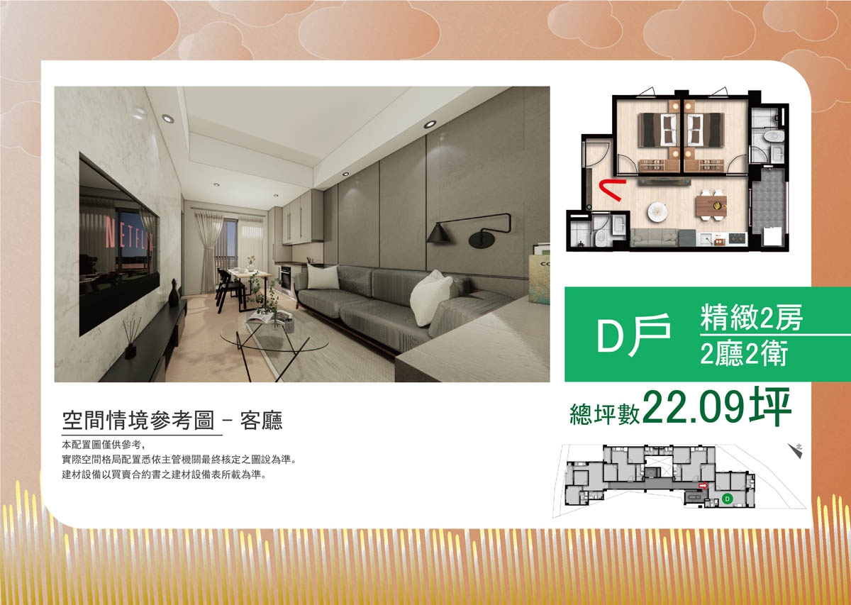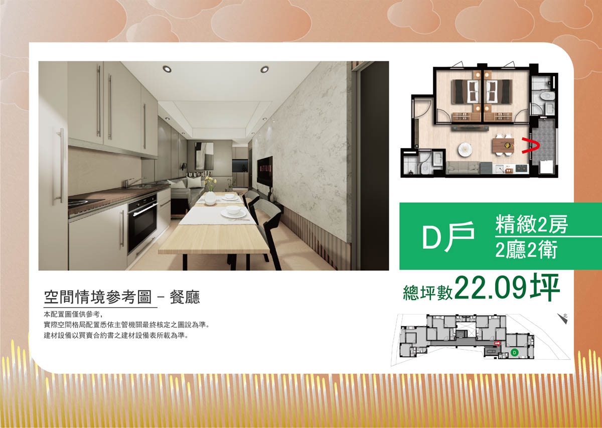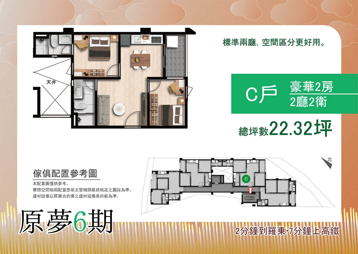 •格局規劃: 二房(21.92、22.09、22.27 、 22.32)