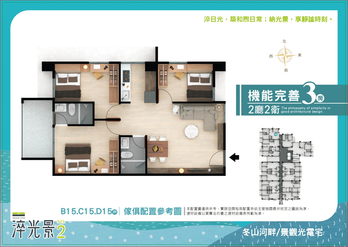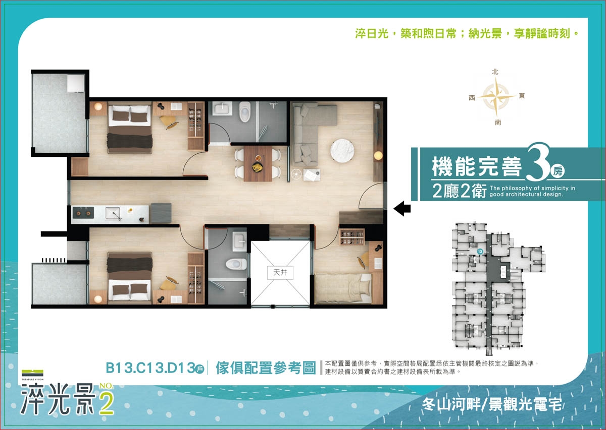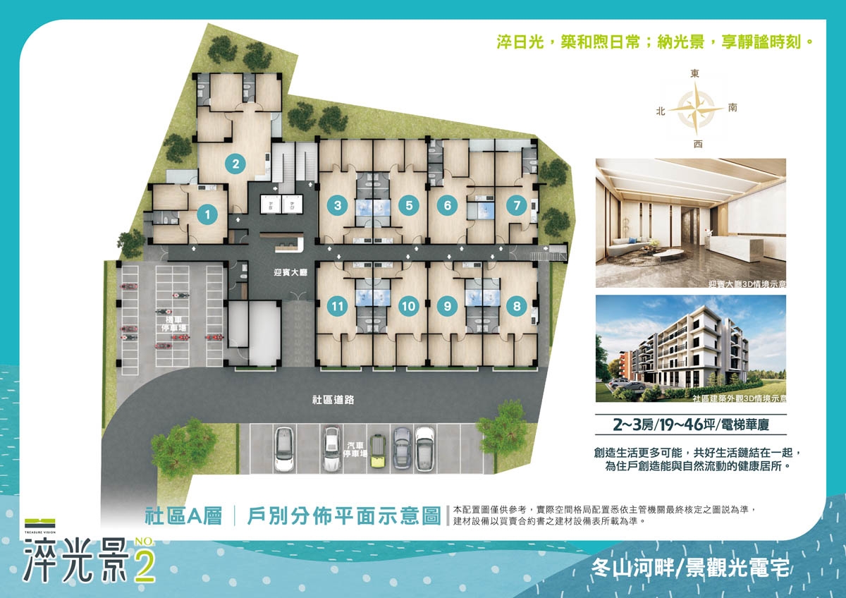 格局規劃:二房(19.53、22.91、28.81) 三房(30.32、46.5)