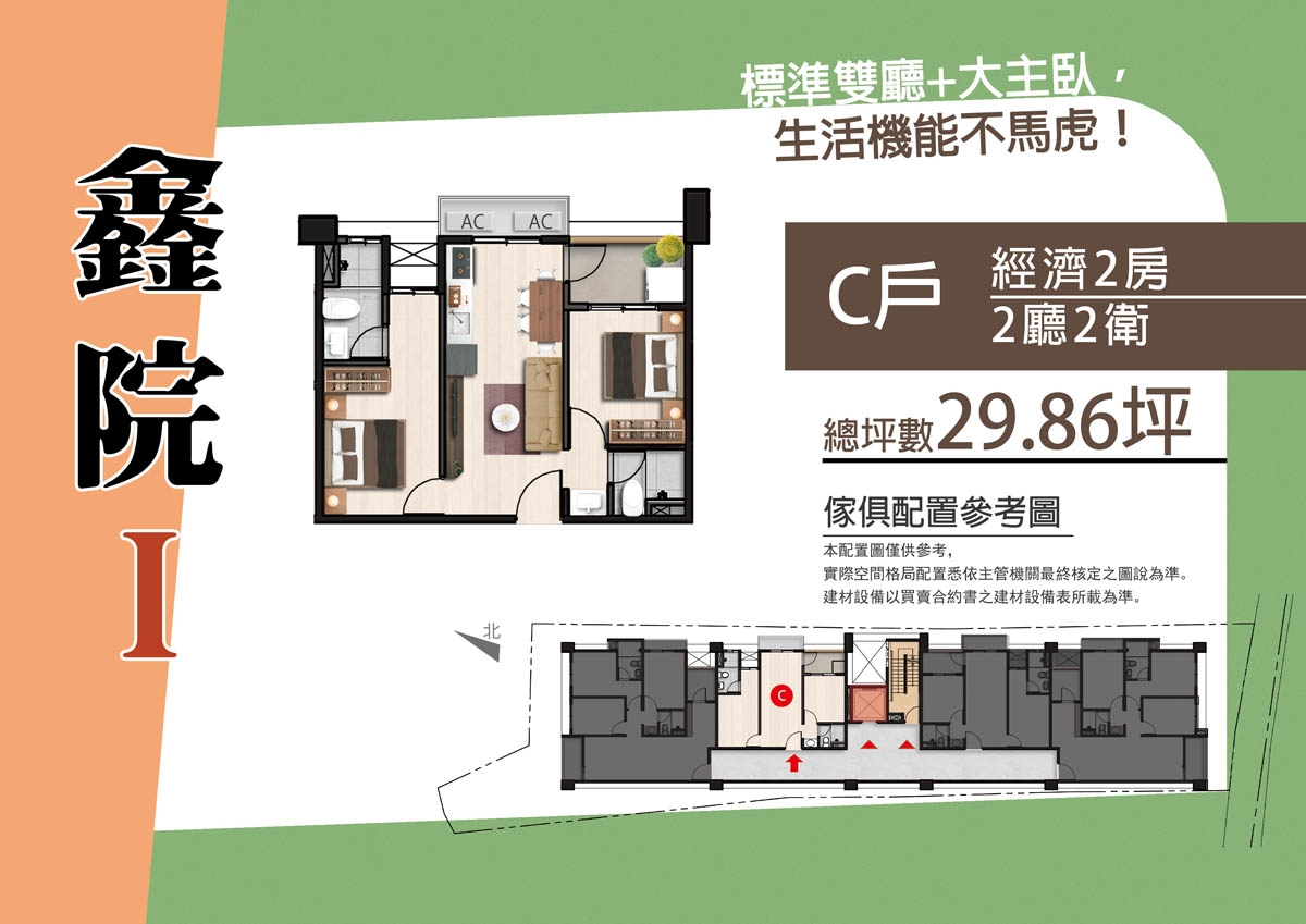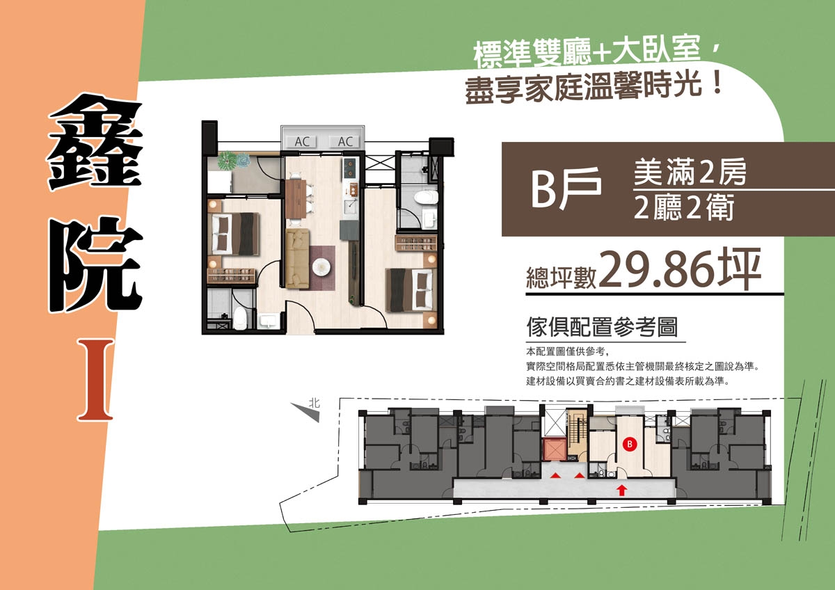 格局規劃:二房(29.86坪)、三房(42.7坪)